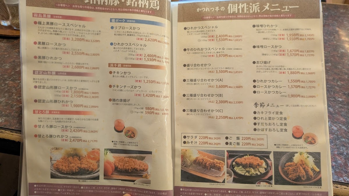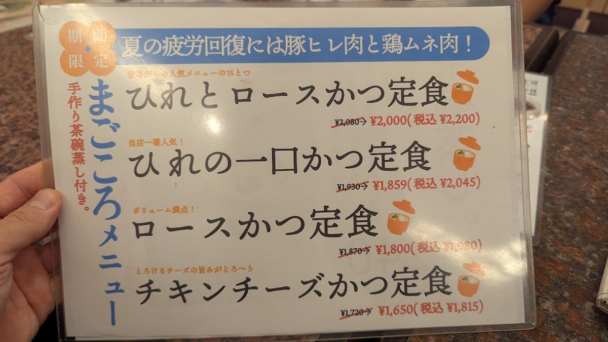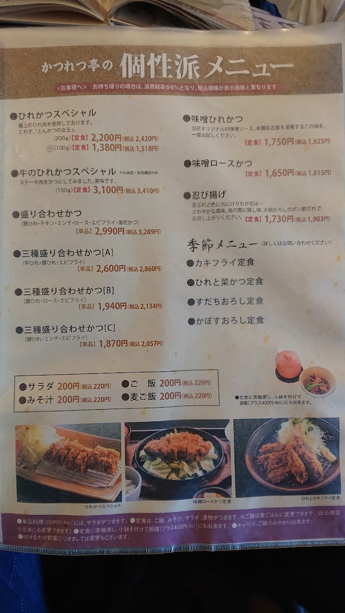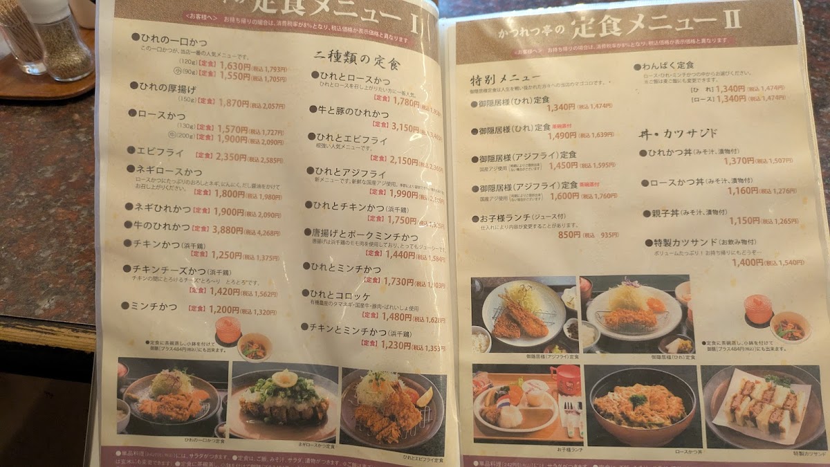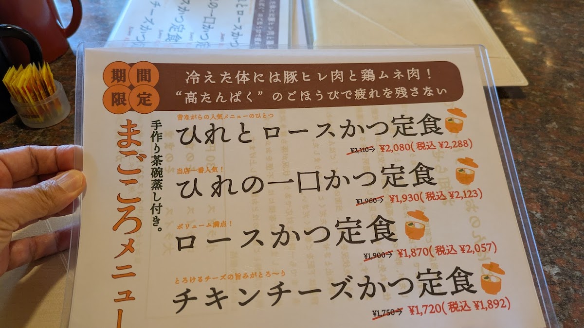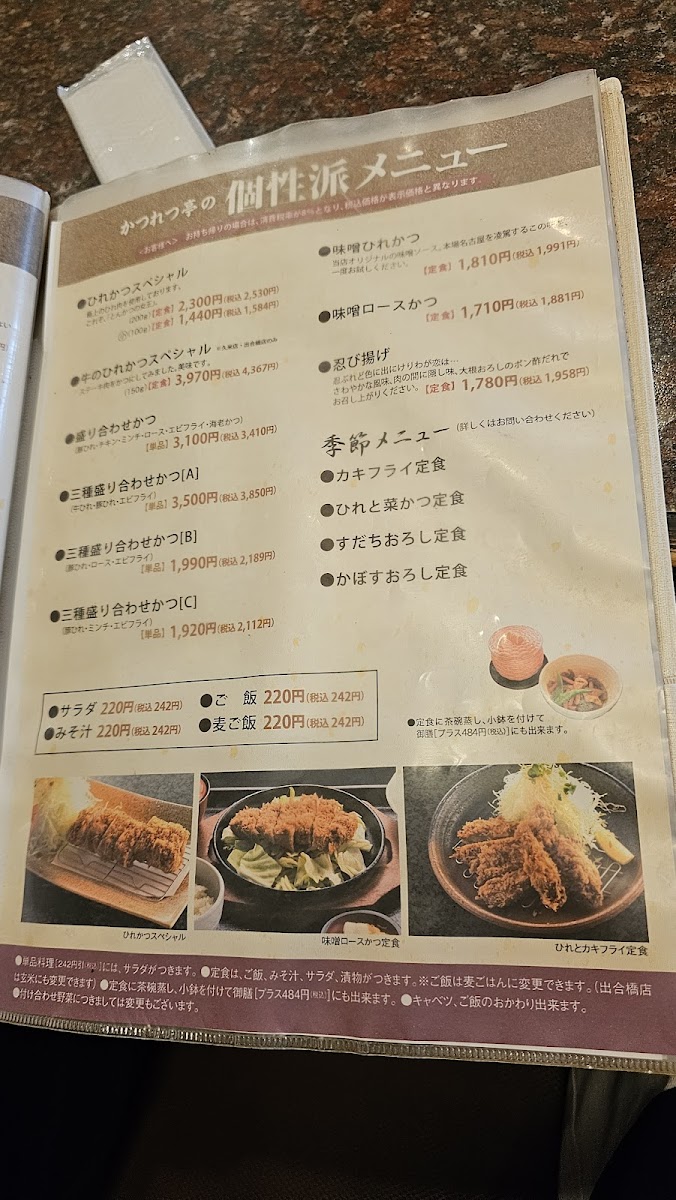 The menu at Katsuretsutei Deaibashi offers a delightful array of traditional Japanese comfort foods, each prepared with precision and care. One of the standout dishes is the ロースとヒレカツ定食, a satisfying set meal featuring both crispy pork loin and tender pork fillet cutlets, served with rice and a side of tangy cabbage. Another popular option is the カツ丼, a comforting bowl of rice topped with a deep-fried pork cutlet, egg, and savory sauce, making it a hearty and flavorful choice. For a healthier twist, the 玄米 (brown rice) provides a nutritious base for any meal. The ネギ おろし ヒレカツ 定食 麦 ご飯 is a unique offering, pairing tender pork fillet cutlets with a refreshing mix of green onions and grated daikon, all served over barley rice. For those who crave a bit of cheese, the チーズチキンカツ delivers a crispy chicken cutlet stuffed with gooey cheese, adding a rich and indulgent flavor. The アジフライ (fried mackerel) is a lighter, yet equally satisfying, dish for seafood lovers, while the 豚肉のとろとろ煮込み presents tender pork simmered to perfection in a savory broth, offering deep umami notes. The キャベツメンチ combines juicy minced meat patties with crunchy cabbage, creating a delightful texture contrast. Lastly, the ヒレ一口カツ定食 serves smaller, bite-sized fillet cutlets, making it a great option for those looking for variety or a lighter meal. With its wide variety of options, Katsuretsutei Deaibashi delivers an authentic and fulfilling dining experience that celebrates the flavors of Japan.
